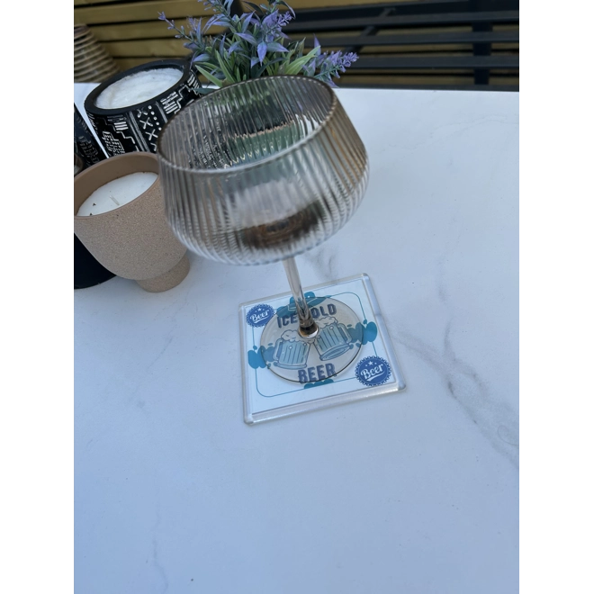 Cowboy hat ice cold beer, glossy acrylic coaster.